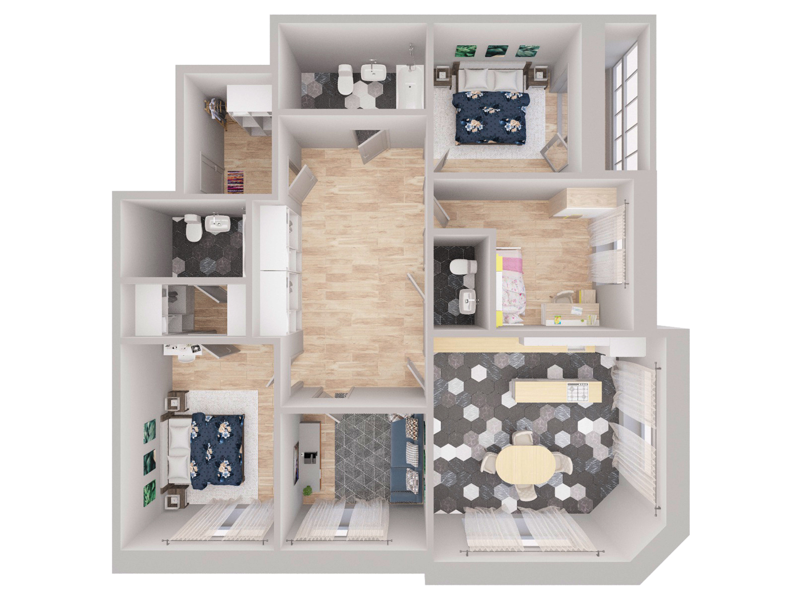 Отличная развитая инфраструктура, комплекс очень удобно расположен, до станции метро Балтийская 10 минут пешком. Закрытая территория, есть подземный паркинг. Очень порадовало при выборе, что всего 3 корпуса в 8 этажей, не муравейник. Квартиру присмотрела с панорамным остеклением.